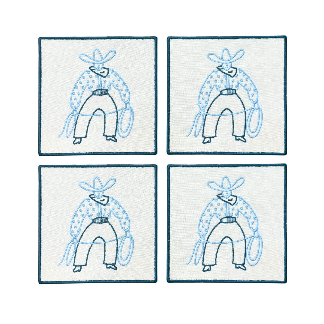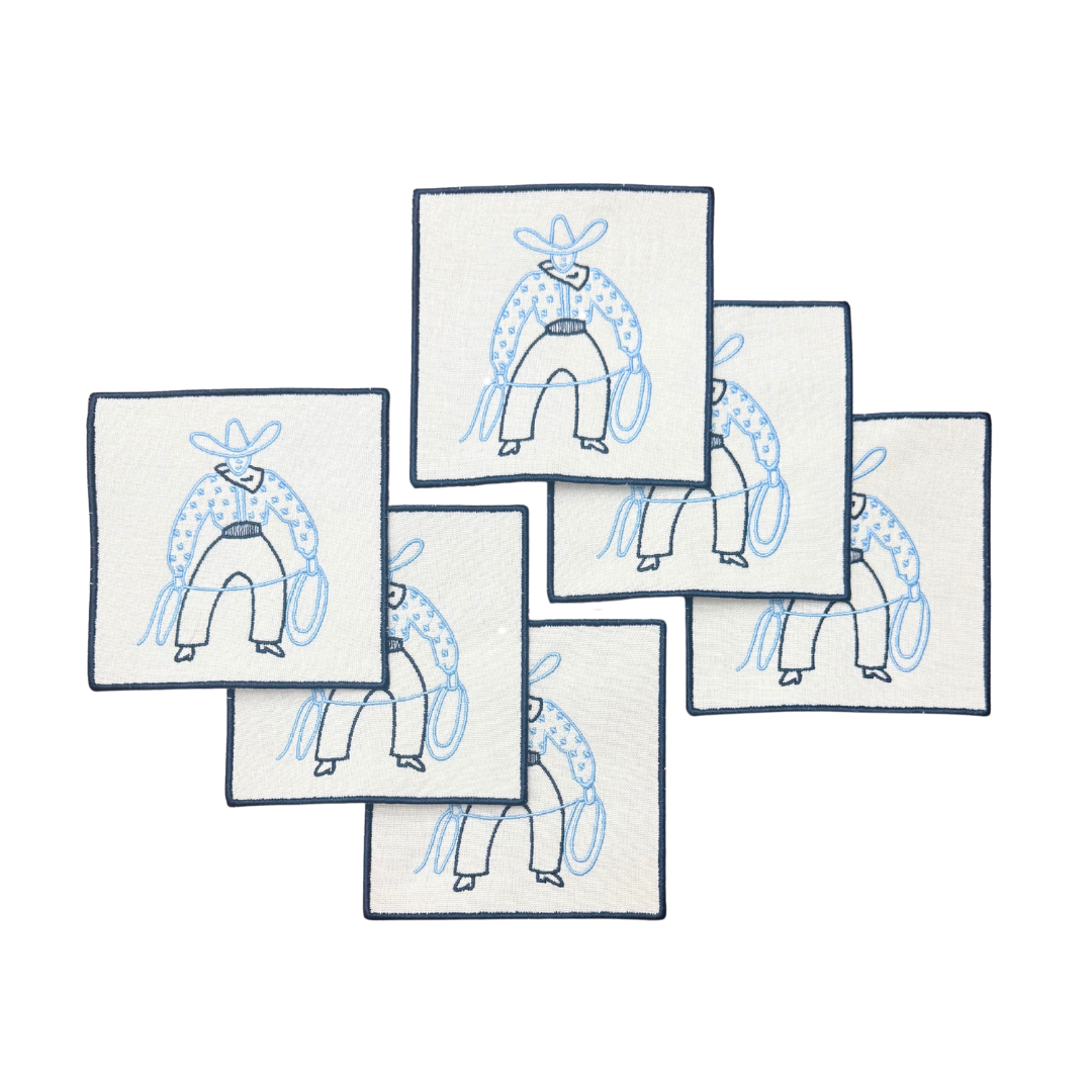 Square Cowboy Linen Cocktail Napkins! They are double-lined linen napkins with a square border. You can also get them personalized with initials or a name for a great gift!